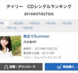 【乃木坂46】15th『裸足でSummer』2日目は62,313枚!累計662,417枚!オリコンデイリー2日連続1位!