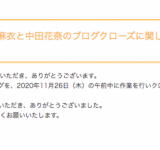 【乃木坂46】白石麻衣、中田花奈のブログクローズ11月26日…(´;ω;`)